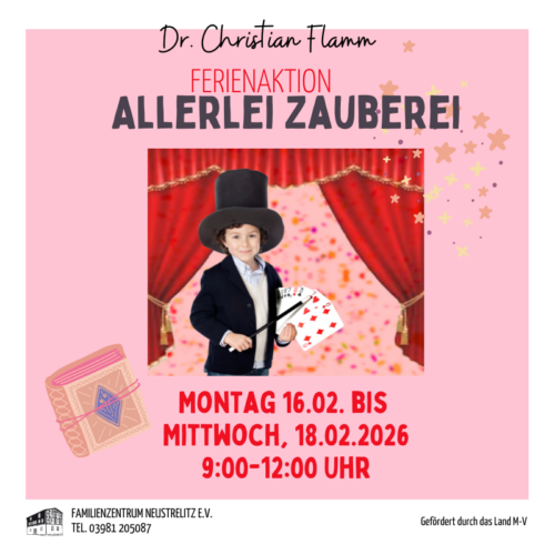 Immer am vierten Donnerstag eines Monats von 14:30 -16:00 Uhr treffen sich Erwachsene im Familienzentrum Neustrelitz zum gemeinsamen Spielen. Bei einer Tasse Kaffee spielen sie im […]