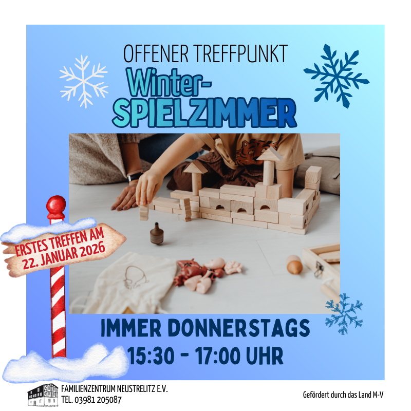 Auch während der kalten, dunklen Jahreszeit möchten wir euch Familien einen Ort zum Spielen, Austauschen, Bewegen und Kontakte knüpfen bieten. Wir öffnen unser Spielzimmer für euch ab Januar 2026 – immer donnerstagnachmittags, in gemütlicher Atmosphäre.